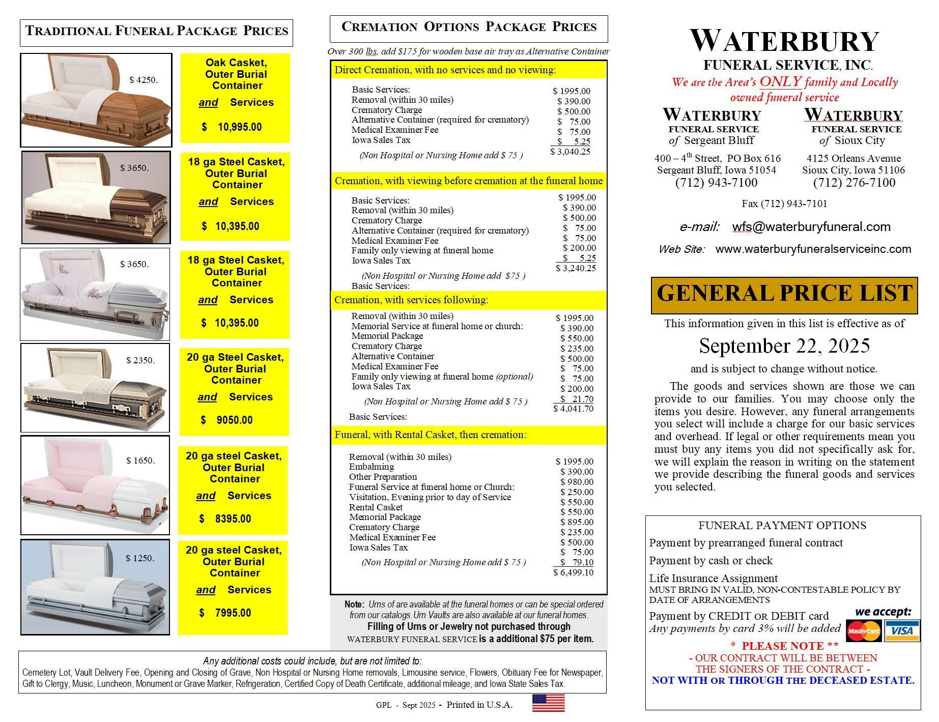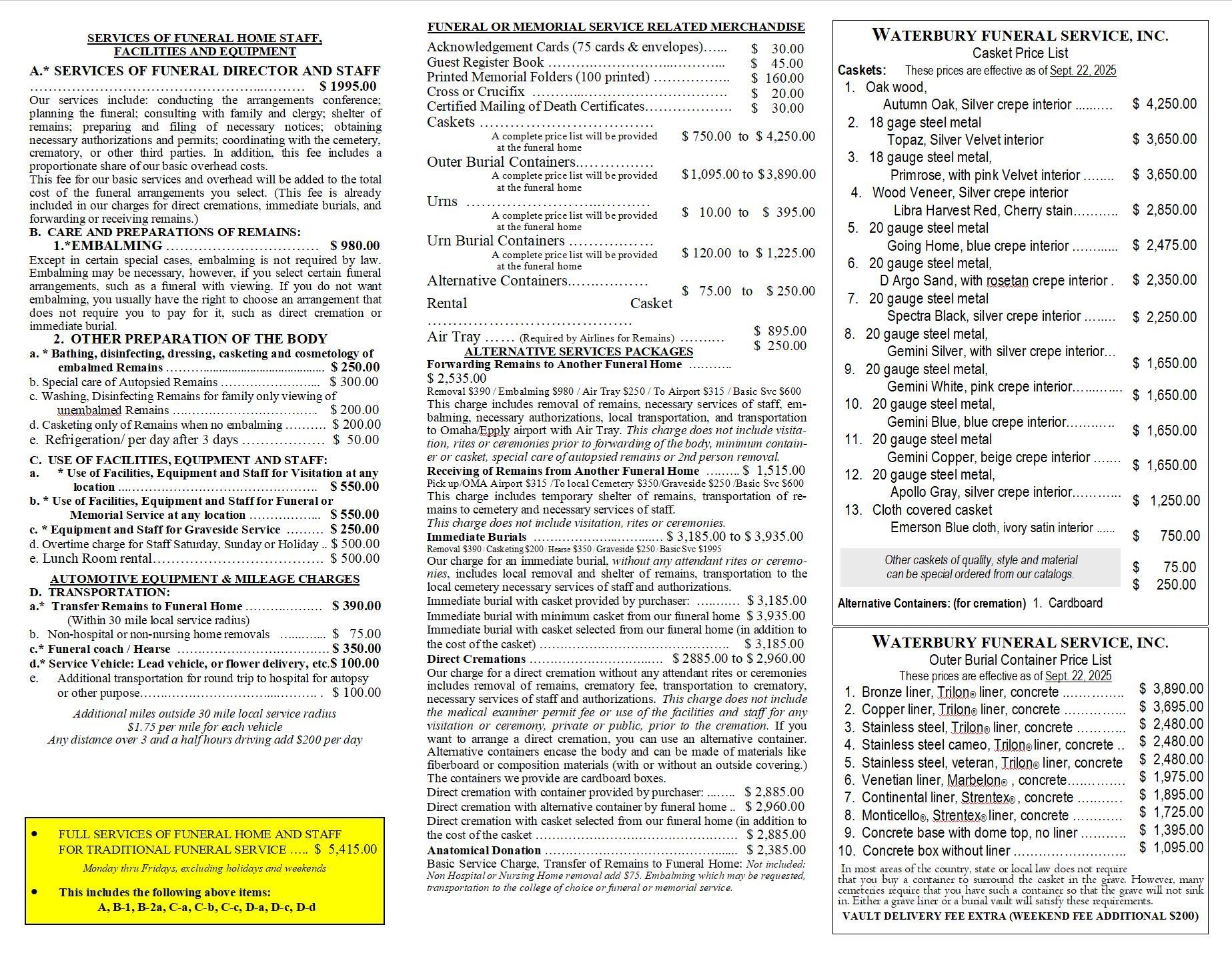 Our General Price List